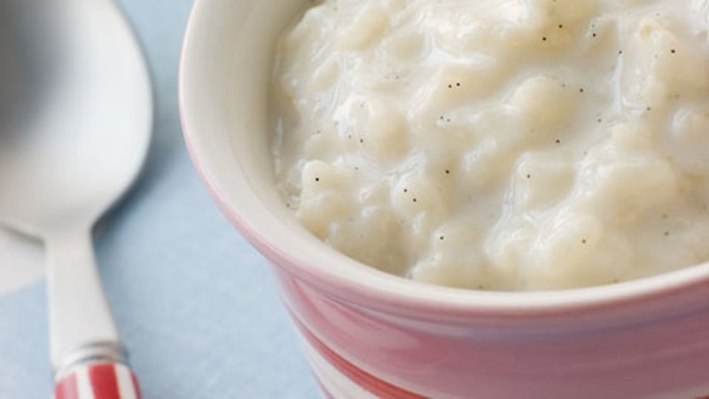 - Add the rice and bring to the boil then simmer until half cooked. Whisk the egg yolk & sugar together in a separate bowl and pour over the cream mixture.