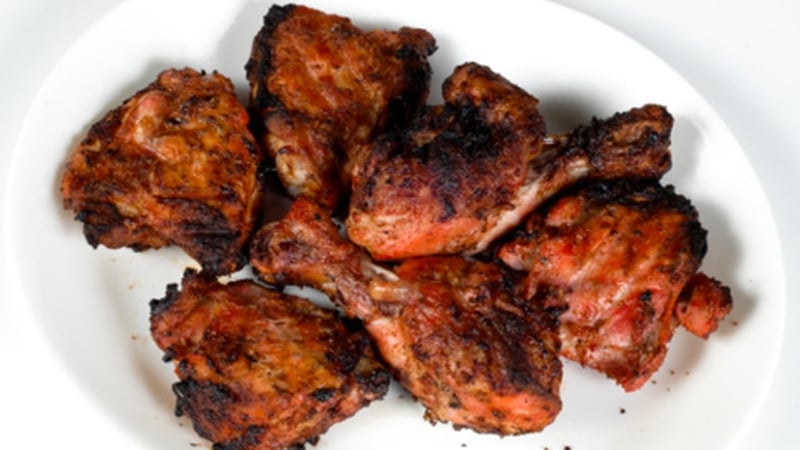 - Place the chicken thighs into a large bowl with the oil, curry powder and chilli flakes. Mix well and leave to marinade for approximately 30 minutes.