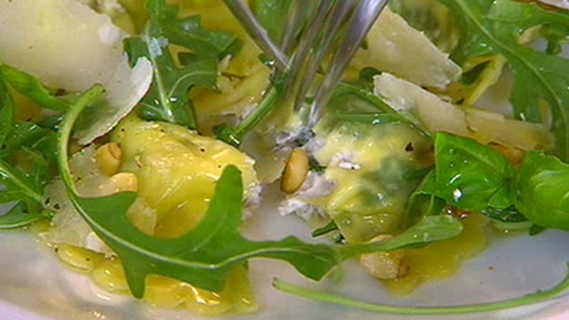 Neven Maguire teams Ricotta Ravioli with Swiss Chard, Parmesan Shavings and Toasted Pine Nuts