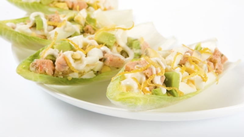 - Separate the lettuce leaves, wash well, dry and place on a large platter.