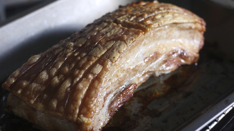 Derry's tips: Make sure skin is dry and add plenty of sea salt for a crispy crackling. Use a lean pork belly, not too much fat. The longer you cook pork belly the tender it is. Remove all the sinews and fat from the pork. Make this dish with any stoned fruits!