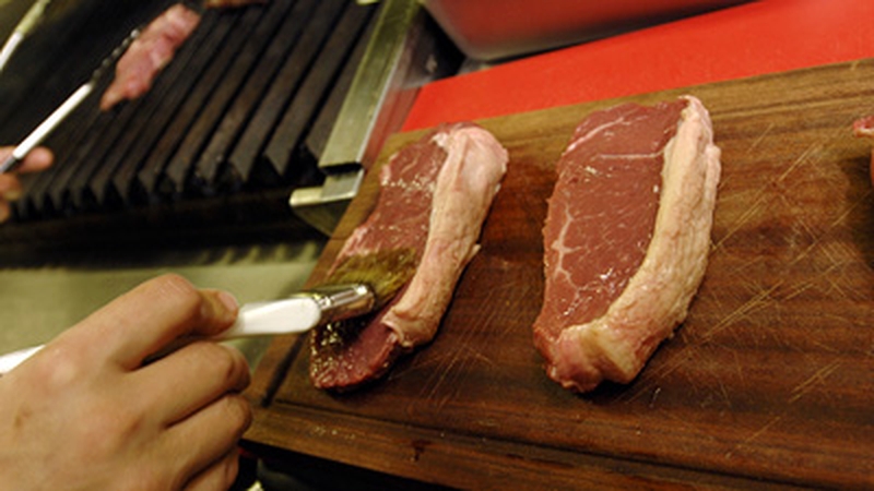 - Brush the steaks with some oil and season with sea salt and black pepper.