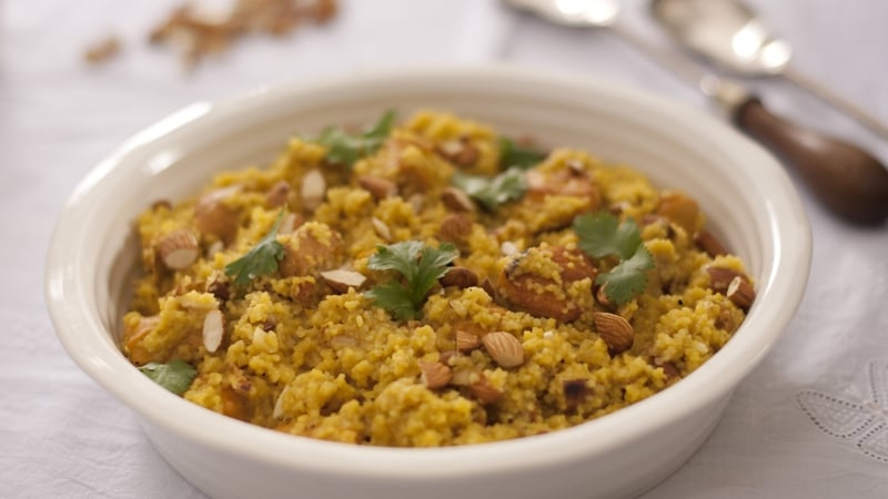 - Stir in the couscous, cover again and cook for a further 3 minutes or just until the couscous is soft, then stir in the toasted almonds, taste for seasoning and serve in warmed bowls.