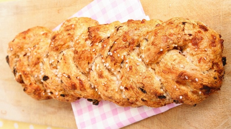 This is a very flavoursome bread and looks extremely impressive for a dinner party. It can also be baked as little muffins or bread rolls.