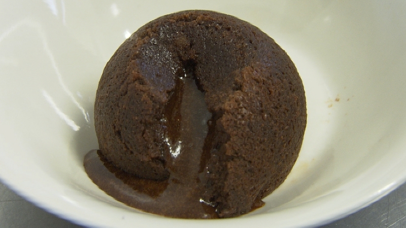 - Place the greased pudding moulds on a baking sheet and divide the chocolate batter amongst them. Place in the oven on the middle shelf to cook for 12 minutes. When cooked, remove from the oven and leave to rest for at least 1 minute. Then run a mini spatula around the inside edges to loosen the puddings, invert onto plates and serve immediately with freshly whipped cream.