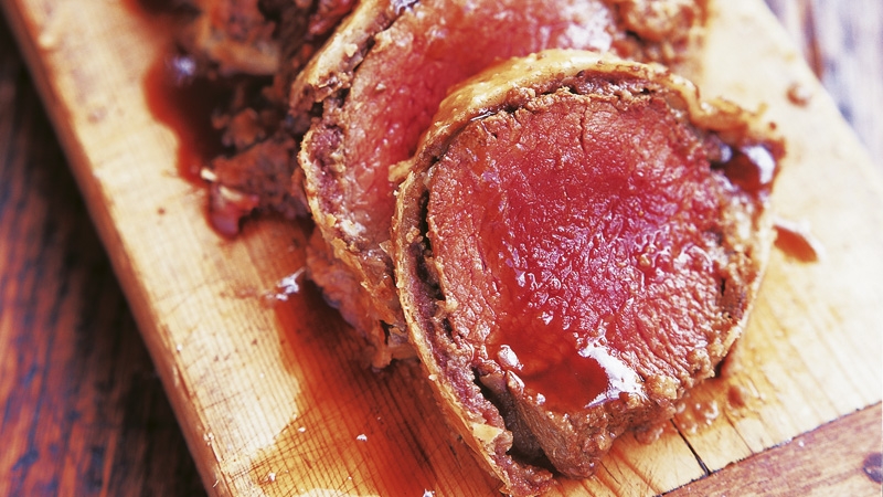 Ed says: “Rumour has it that the famous General Wellington, whilst busy defeating Napoleon, acquired and enjoyed French cooking skills, but so as not to offend or demoralise his men, he combined the delicacies of French puff pastry with the British obsession for eating beef. I’ve chosen to use English rough puff pastry as I imagine on the battle field it would be almost impossible to produce perfect puff pastry! Also, I prefer the contrasting textures you get when you use rough puff pastry.”