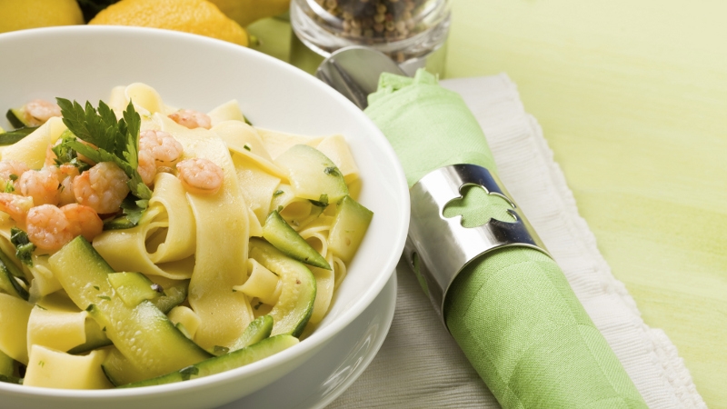 - Once sauce is nearly ready, boil paperdelle and pan fry mushrooms adding prawns at the last minute to take on flavour - very delicately.