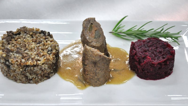 - Plate up dish on the serving plate - place beetroots, buckwheat and rollers side by side.