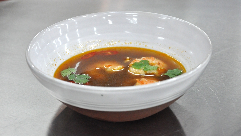 - Place the prawns in the bottom of a bowl and pour over the strained broth.