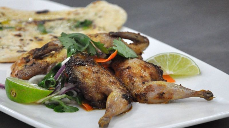 - Quail pan fried skin down and then finished in oven at 180°C for 8-10minutes