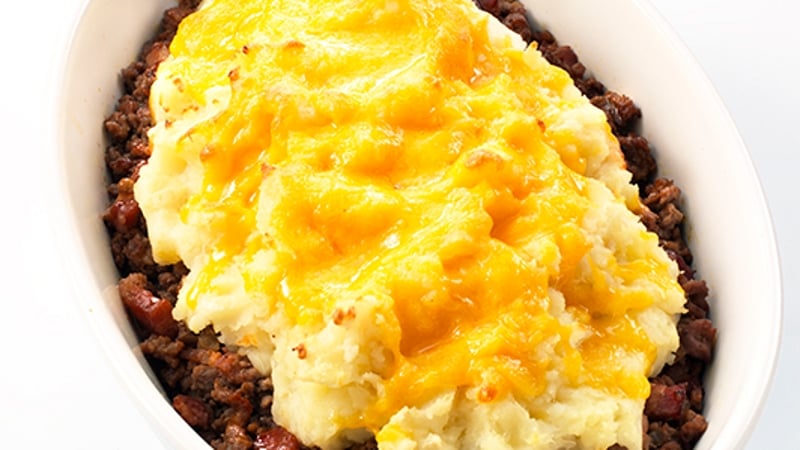 - Place the meat into a baking dish or divide between 2 dishes if freezing, top with the mash and then cheese (it’s at this point that the dish is ready for freezing).