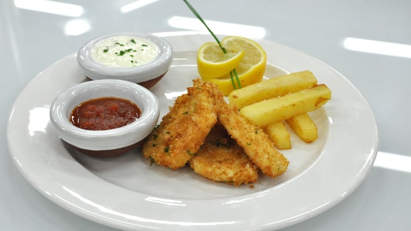 - Mix breadcrumbs, salt and chopped parsley. Coat fish in breadcrumb mix.