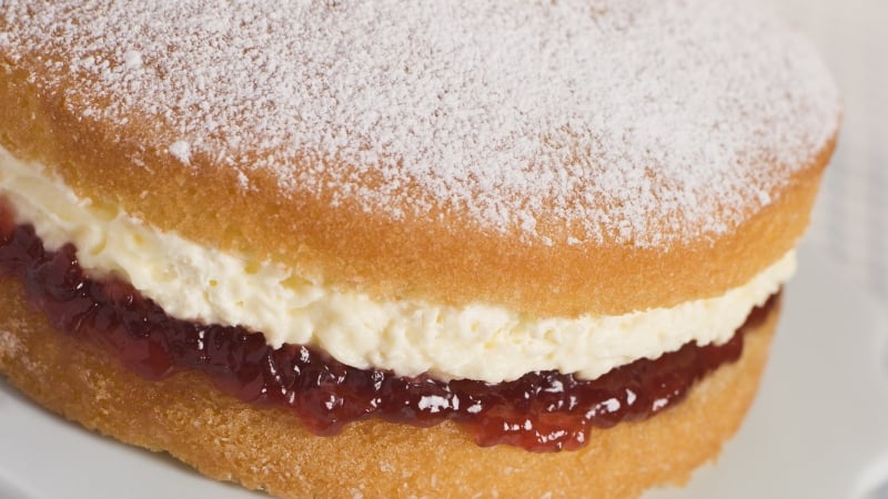 - Spread half with strawberry jam and slices of strawberry. Top with whipped cream. Top with the second cake. Dust with icing sugar.