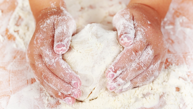 - Punch the dough down on a lightly floured work surface then knead again for a minute and place back in the bowl to rise for a further 10 minutes.