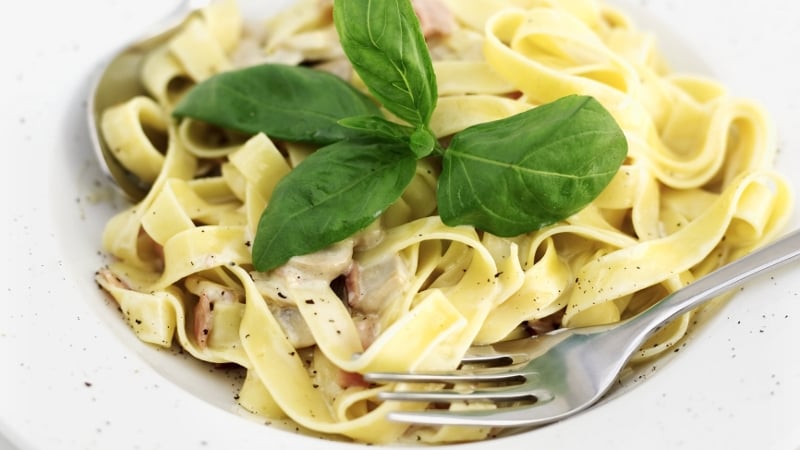 - After 2 hours, bring a large pan of salted water to the boil and cook the tagliatelle as per packet instructions.