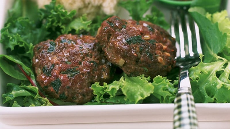 - To serve, place the lettuce leaves in the bottom of your serving bowl, then place the chopped cucumber and tomato over them. Place the cooked burgers on top with the pitta breads and spoon over the sauce.