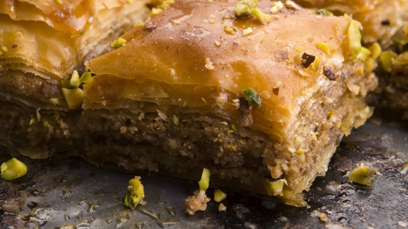 - Pour the syrup over the hot pastry and leave until completely cold before serving.