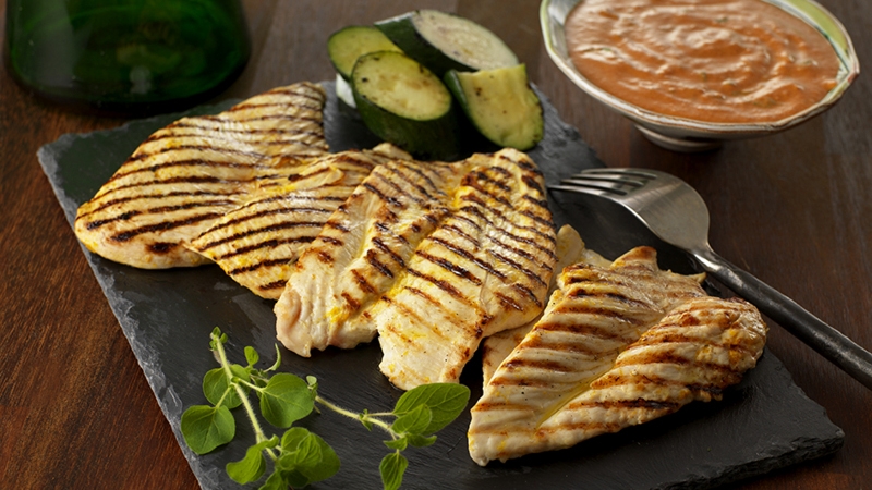 - Put the chicken on the barbecue and cook on a moderate heat for 6-7 minutes on each side.