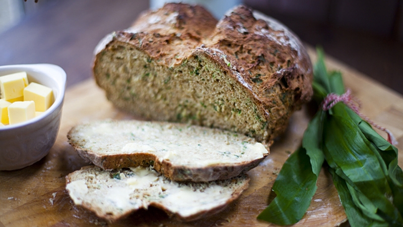 - Combine the flour, bicarbonate of soda, wild garlic and salt in a mixing bowl.