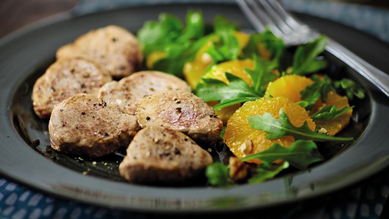 This recipe for Irish Pork Steak with Orange, Walnut and Rocket Salad serves 2-3 people and can be made from ingredients found in Aldi’s 101 Irish stores.