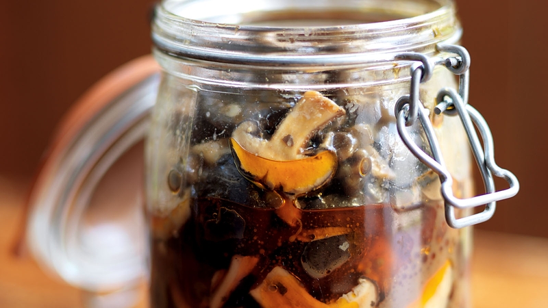 Pickled mushrooms are wonderful served with hot meals or as a base for fish