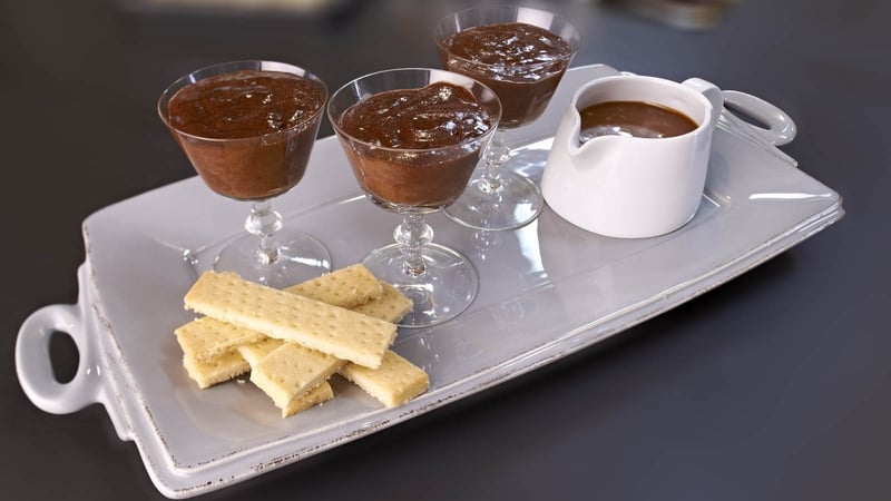 - Once the caramel is a rich golden toffee colour, take it off the heat for a moment and stir in half the cream. When the bubbles die down, stir in the rest of the cream and salt to taste. Serve with the chocolate mousse and shortbread biscuits.