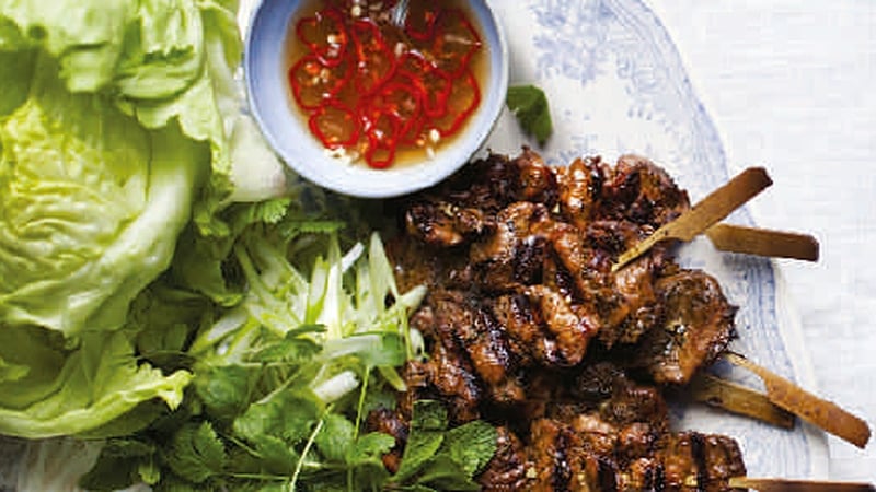 Vietnam is all about incredible street food and when I visited the country, this was one of my favourite dishes to eat on a plastic stool at a roadside pop-up vendor. It's a feast of smoky pork skewers, wrapped in lettuce leaves with fresh herbs and dipped in a salty sweet sauce. Barbecue the pork to get the essential smoky element of South East Asian cooking, but a griddle pan will also work. The classic version uses pork belly to form little pork patties, but this is a quicker variation.