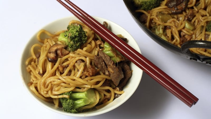 - Fry for a few minutes before adding the chicken, sweet chilli, rest of the soy sauce. Then the noodles, broccoli and sesame oil and seeds.