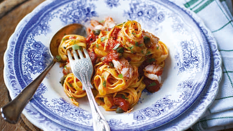 - Cook for 10 minutes and then stir through the crab meat, cream, lemon zest and juice and capers. Allow the sauce to bubble away for 2–3 minutes and then tumble in the pasta.