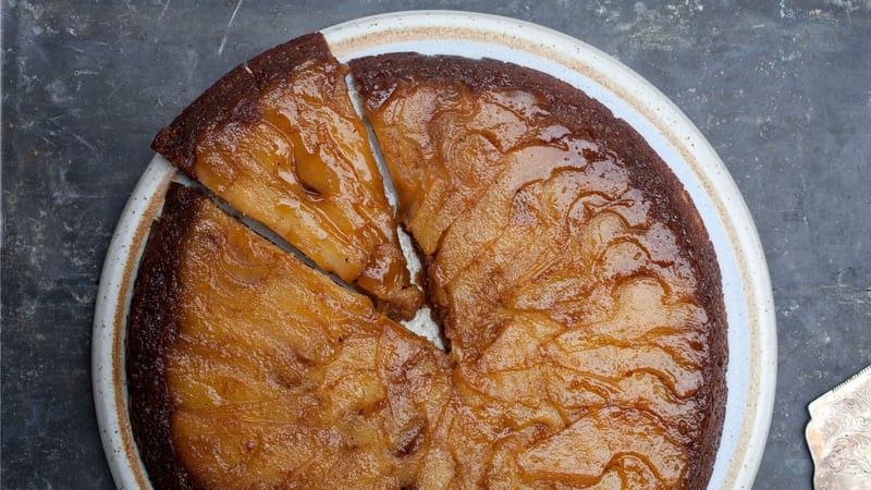 Lynda says: "This pear and ginger dessert is like a tarte tatin, but with a cake base. When the cake comes out of the oven it is flipped upside down, revealing the pears covered by the caramel and ginger syrup."
