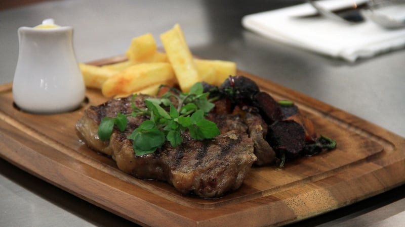 - Top steak with sea salt and sprig of watercress and serve.