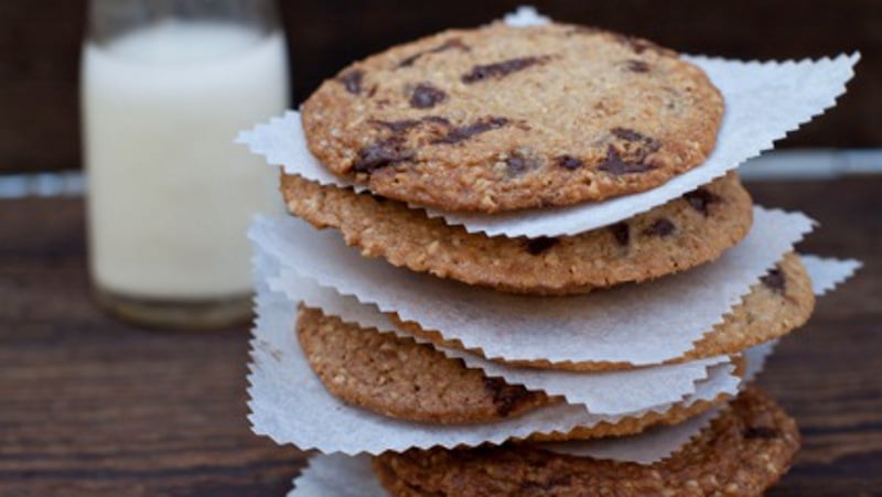 - Scoop up a heaped teaspoon of dough and place on a baking tray, allowing enough space for the cookies to spread. Bake the cookies for about 20 minutes, or until pale golden. Remove from the oven and cool on the trays for 5 minutes before transferring to a wire rack to cool completely.