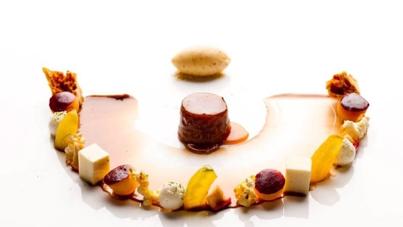 - Slice the apples in quarters, remove the core then skin the apple and remove the sharp edges on both sides. Cut the quarters in two lengthways and put them in a bowl with the olive oil. Put the sugar in a suitable pot, add enough cold water to make a thick slush and put heat the sugar water until it starts to caramelise and then turn brown. At that point, remove it from the heat and add the apples along with the lemon thyme. Toss the fruit through the caramel and then put the pot back on the heat to caramelise it a bit more. After two minutes, remove the pot from the heat again and transfer the apples and caramel into a small container. Leave to cool.