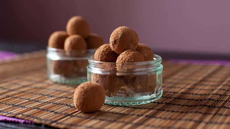 - Remove from fridge. Scoop teaspoon size balls of mixture, then roll balls between both palms to round off. Roll quickly and lightly to avoid chocolate from melting. To finish, roll each ball in cocoa powder.