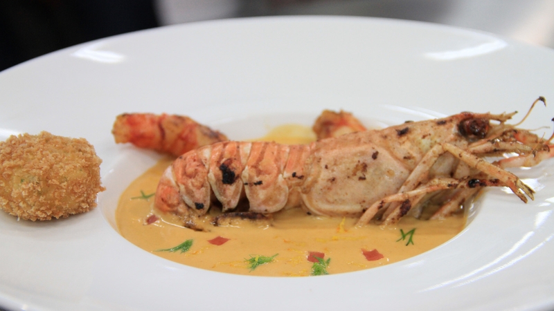 - 6. Heat a small amount of flavourless vegetable oil in a small frying pan. Add the shelled tiger prawns and langoustine and cook for about three minutes until just cooked through. Take off heat and drain the excess oil off the prawns and langoustine by placing on kitchen roll.