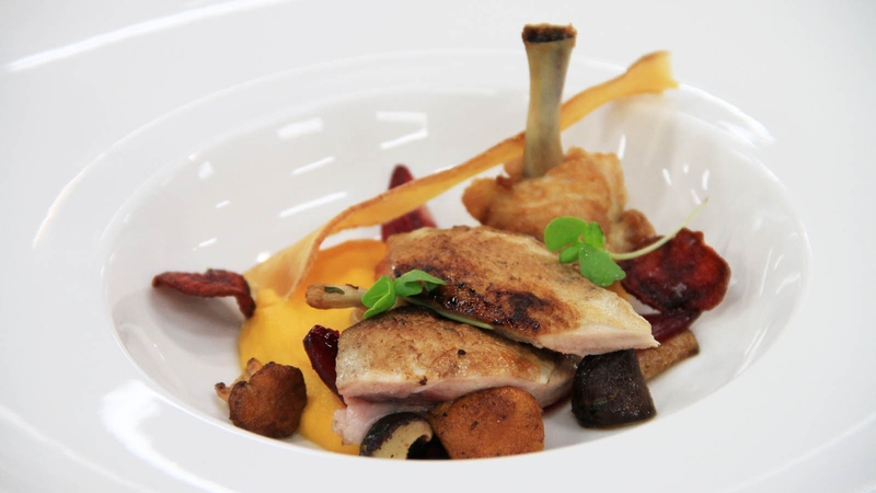 - Before serving crispen up the skin in a hot pan for 2 minutes and then let rest