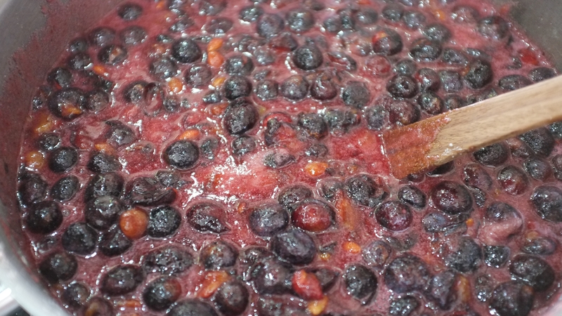 - At this stage turn up the heat and bring the fruit to a boil for 10-15 minutes, stirring regularly to break up the fruit and allow the stones at their centre float to the top. Skim these as you go along with any scum that comes to the top.