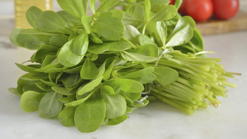 - Remove any long stalks from the purslane, chop finely and add back to the leaves.