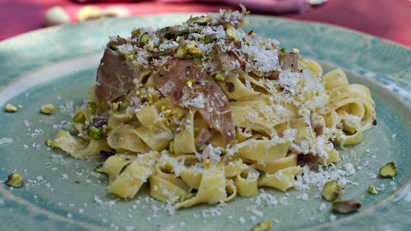 Pasta with Parma ham and pistachios