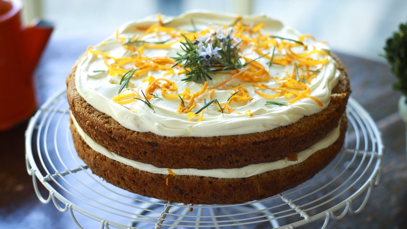 - Assemble the cake by spreading one of the layers with half the rosemary & orange crème fraiche.