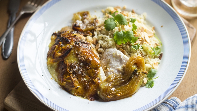 - Let the chicken rest for 10 minutes before you carve it, then arrange on warmed serving plates with the couscous to serve.