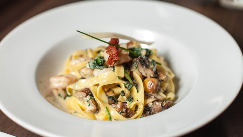 - Just before the prawns are ready, place the precooked fettuccine into the pot of boiling water for approximately one minute and drain well.