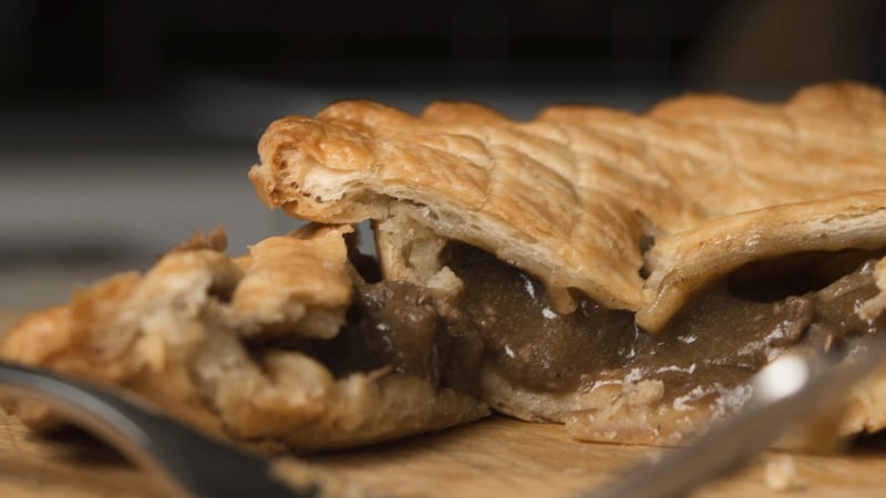 - Brush the pie with the egg wash and place in the preheated oven for 25 – 30 minutes or until the pastry is cooked and lovely golden brown colour.