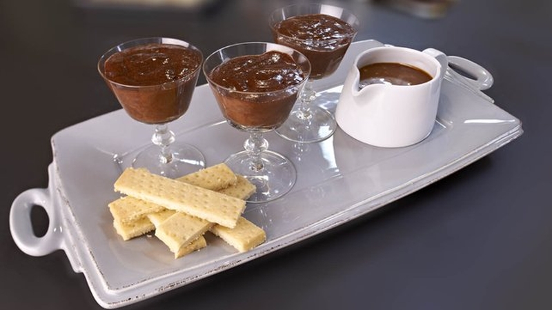 Chocolate Mousse, salted caramel sauce, shortbread biscuits. Click here for the recipe.