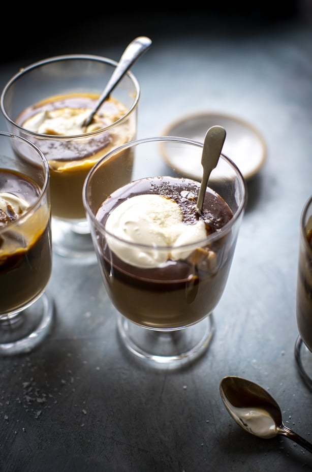 - To serve, drizzle the puddings with caramel sauce and top with a dollop of crème fraiche and a final drizzle of sauce along with some sea salt.