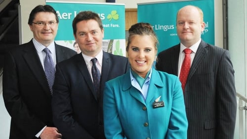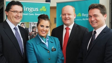 Joe Gilmore, Managing Director Ireland West Airport Knock, Aer Lingus Regional cabin crew member Lorraine Doyle, Sean Brogan, Interim Chief Executive Aer Arann and Declan Kearney, Director of Communications, Aer Lingus