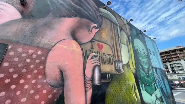 Embarking on a tour of the district to learn about the street art with Wynwood Buggies, my guide and "philosopher" Marco drives us in the six-seater golf cart for just a few metres before he stops to point out a giant mural on the side of the building.