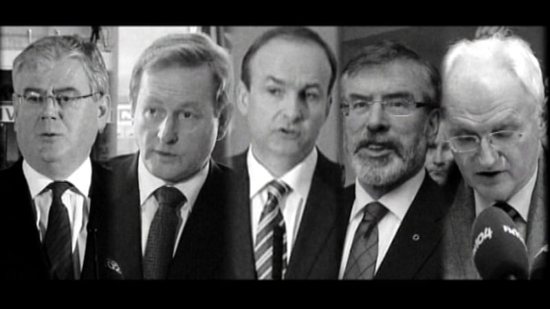 2131 The five leaders are shown in silhouette in Pat Kenny's Frontline promo.