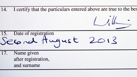 While most new parents have to travel to a register office to formally register the birth of their child, Westminster City Council registrar Alison Cathcart travelled to Kensington Palace for the Duke to carry out the task.