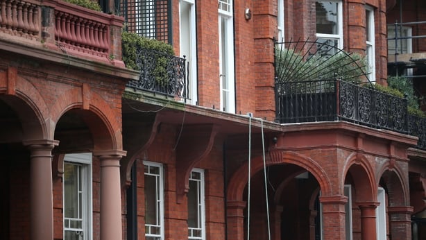 The iron railing on the first-floor balcony of the five-storey terraced building appears to have fallen away, although the brick base does not appear to be damaged.